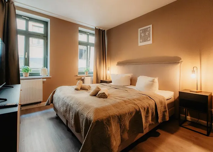 Luga Homes - Karli dairesinde mutfağın yanı sıra çalışma masası, kahve/çay makinesi, oturma alanı içeren odalar bulunmaktadır. Leipzig Wilhelm-Leuschner-Platz tren istasyonu 750 metre uzaklıkta olup St. Thomas Kilisesi'dan 1 km uzaklıktadır.